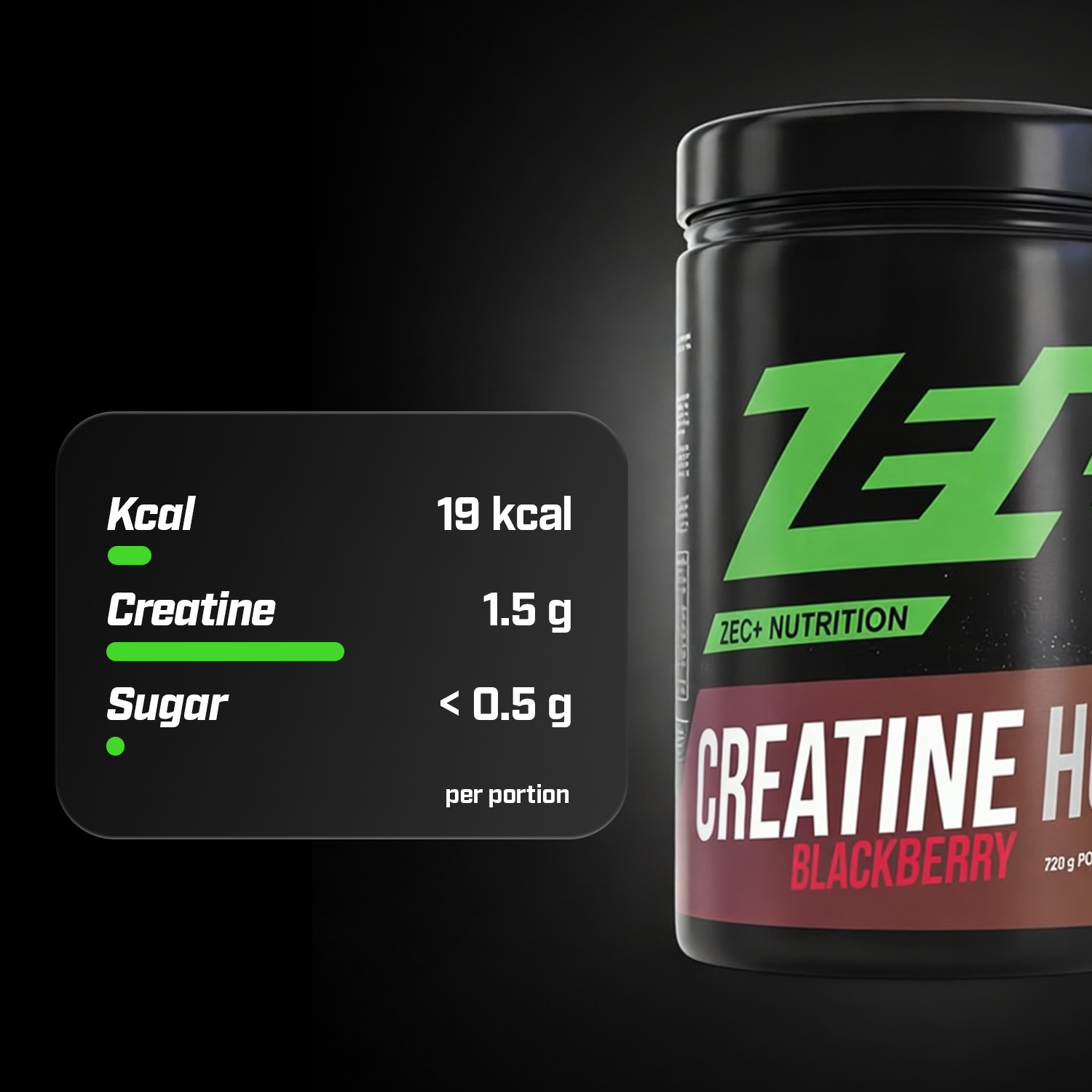- Hochkonzentriertes Creatine HCL – effiziente Form mit guter Löslichkeit und angenehmem Geschmack.